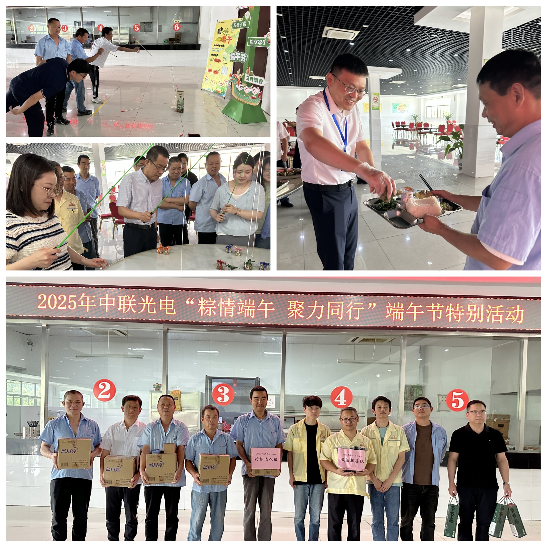 10點40分,員工們陸續來到食堂就餐,公司領導親手將滿載祝福的粽子遞到職工手中,親切關懷浸潤人心。午飯結束,開始進行團隊投壺比賽,各組隊員屏息凝神、默契協作,每一次精準命中都激起陣陣喝彩;妙趣橫生的“釣粽子”比拼更是將氣氛推向高潮,隊員們靈活配合、智趣相融,現場歡呼與掌聲交織成歡樂的海洋。職工們在傳統與現代交融的活動中深度互動,真切感受到集體的智慧與協作的力量。
