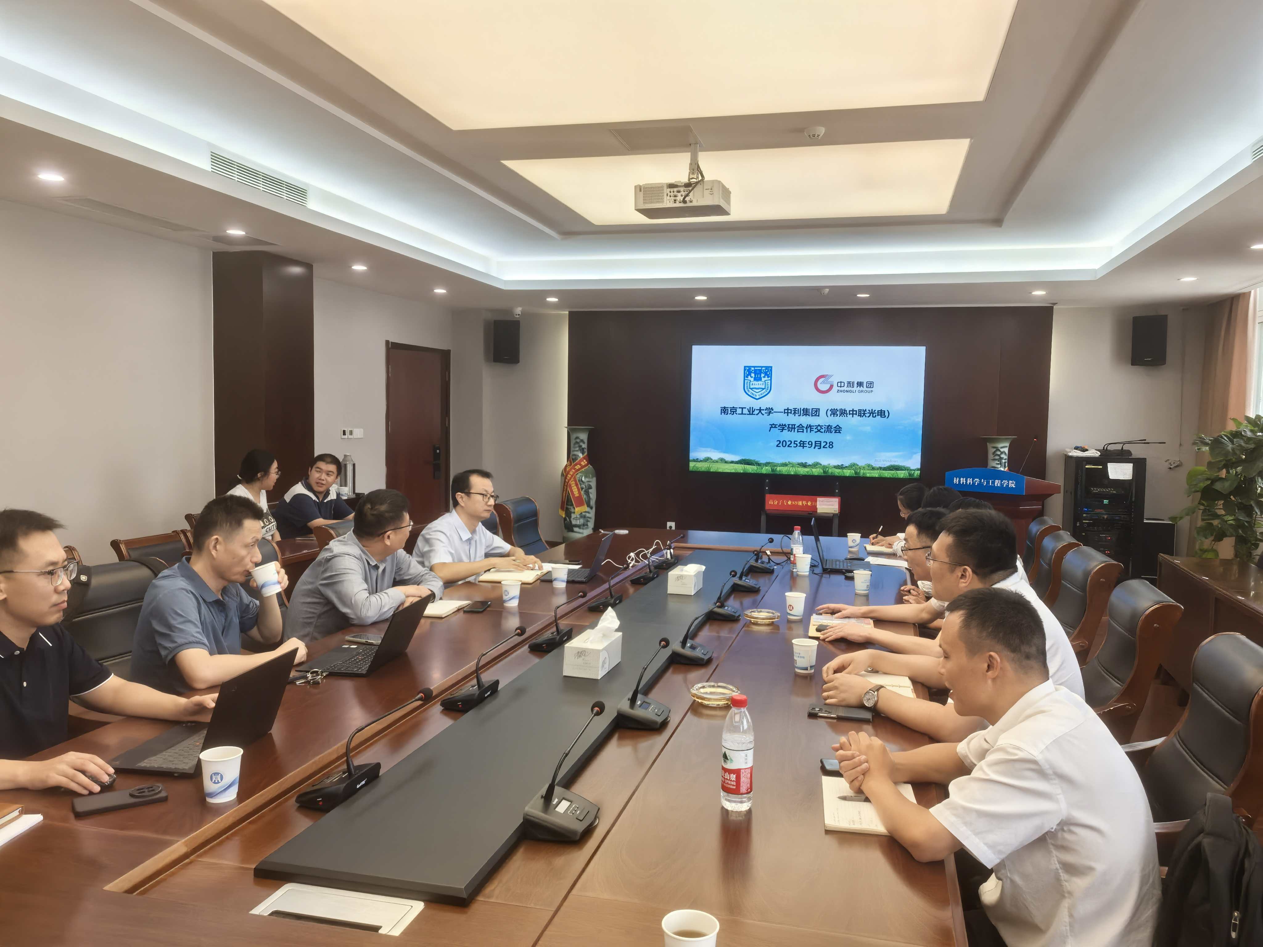 9月28日,江蘇中利集團股份有限公司副總經理陳新祥、常熟中聯光電新材料有限責任公司副總經理姚志剛、江蘇中利集團股份有限公司ESG與管理部總經理萬洪剛,以及中聯光電技術團隊代表劉秋生、王俊剛、向秀琴等一行赴南京工業大學,就校企產學研技術聯合攻關開展前期交流,南京工業大學材料科學與工程學院江國棟教授、陳雙俊教授、高分子系主任沈育才教授及高分子系副主任毛澤鵬教授等出席本次交流。