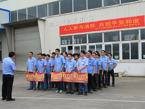 本次消防演練設消防安全工作基本常識培訓、火災撲救消防器材技能培訓以及三公斤干粉滅火器油盆滅火比賽、團隊2人二檔消防栓出水比賽等四項議程。中聯高分子交聯部、高分子膠料部、金屬拉絲、金屬焊帶共30多名員工參加演練。