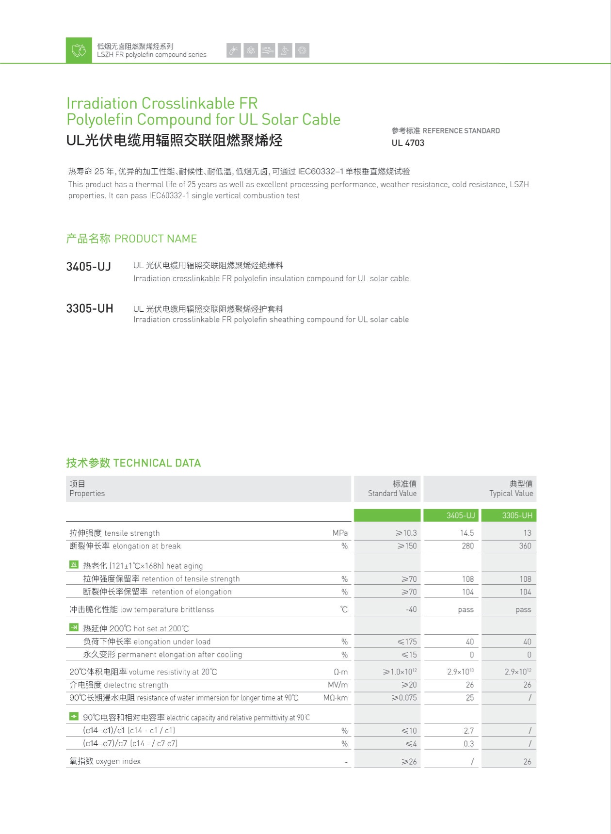 UL光伏電纜用輻照交聯阻燃聚烯烴