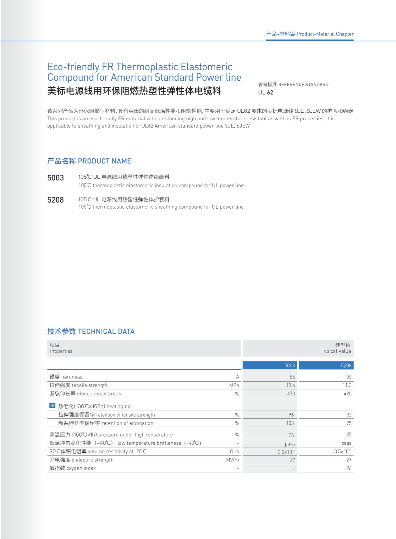 美標電源線用環保阻燃熱塑性彈性體電纜料