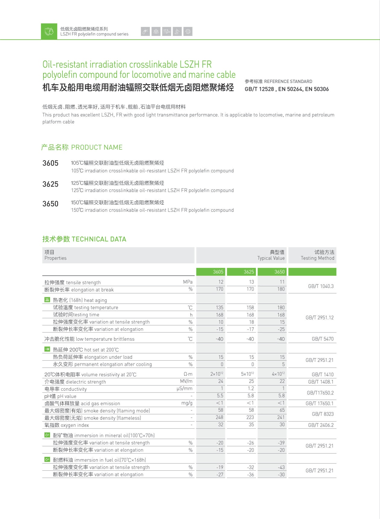 機車及船用電纜用耐油輻照交聯低煙無鹵阻燃聚烯烴